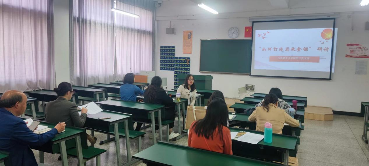 其后,第三支部全体教师共同学习了习近平总书记在中国人民大学的讲话,并就“如何打造思政金课”为主题开展讨论。4月25日上午,中共中央总书记、国家主席、中央军委主席习近平来到中国人民大学考察调研。他希望人民大学绵绵用力,久久为功,止于至善,为全国大中小学思政课教学提供更多“金课”。也鼓励各地高校积极开展与中小学思政课共建,共同推动大中小学思政课一体化建设。在学习和讨论的过程中,唐娇老师提出“金课”即是标准又是要求,打造金课,首先,“重视”是基础。第二,打造思政“金课”,要增强思政课的兴趣引力。让思政课接地气,让思政课更有趣,才能吸引更多老员工喜爱思政课,才能让思政课成为“金课”。谭钟培老师提出打造思政“金课”,要增强兴趣引力,要勇于创新。从形式内容都要接地气、有活力,要结合新时代广大青少年的心理特点。思政课不是照本宣科,不是干巴巴的说教,不是“填鸭式”的你讲我听,而是要讲事实、摆道理,既要讲好高深理论,也要结合生动实践,要寓教于乐,和风细雨,润物无声。许芬老师提出思政课要适应大背景、立足大格局、统筹大系统、进入大视野、挖掘大资源、关注大事件、积累大知识、用好大课堂、适用大技术、协调大队伍,切实提升高校思政课教学质量和效果。